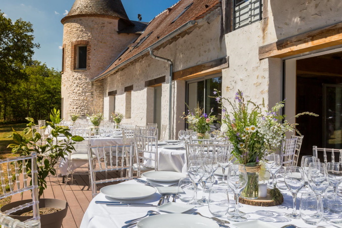 : "Chandeliers, vases colorés, fauteuils Emmanuelle... n'hésitez pas à consulter les sites de nos prestataires, vous y trouverez de belles inspirations pour décorer vos tables ou votre espace de cérémonie." Diane & François